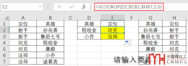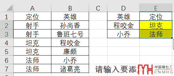 如下所示: 需要查找值是英雄,返回值是定位,正常需要在原始數(shù)據(jù)庫中返回值在查找值的右邊,但現(xiàn)在原始數(shù)據(jù)庫中的英雄在定位的后面。所以在E2使用的公式是: