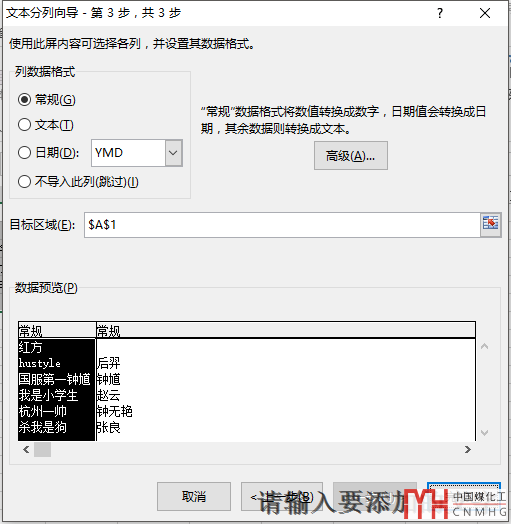 此界面可以對(duì)每列數(shù)據(jù)格式進(jìn)行選擇,是文本還是數(shù)字,點(diǎn)擊完成,便得到了最終的分開(kāi)數(shù)據(jù)結(jié)果: