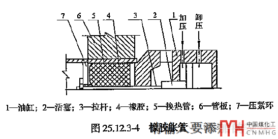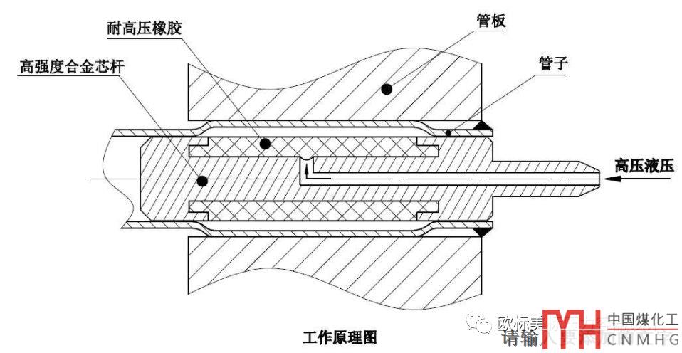強(qiáng)度脹接方法常用的是機(jī)械脹接--非均勻脹接和柔性(液袋,橡膠等)脹接--均勻脹接。強(qiáng)度脹接是通過外力使換熱管在管孔內(nèi)膨脹并達(dá)到塑性變形,管板處于彈性或部分塑性變形(這就要求管板的強(qiáng)度要高于換熱管的強(qiáng)度);外力卸載后,管板彈性回彈大于換熱管,管板抱緊換熱管,可以承受換熱管軸向機(jī)械和溫差載荷且不泄漏。脹接可以消除換熱管和管板的間隙,可以用于殼程有縫隙腐蝕傾向的場(chǎng)合,又由于連接形式不適用于存在振動(dòng)或過大的溫度波動(dòng)的場(chǎng)合,由于暴力手段使換熱管徑擴(kuò)大產(chǎn)生較大的冷作應(yīng)力不適用于明顯的應(yīng)力腐蝕傾向的場(chǎng)合。機(jī)械脹可以稱為機(jī)械滾珠脹,常用的是三滾柱,要求稍高可以要求用五滾柱脹。機(jī)械脹脹桿不能太細(xì),脹接不能太長(zhǎng)目前機(jī)械脹基本只用于管板比較薄的場(chǎng)合,管板稍厚基本都是用柔性脹接。因機(jī)械脹勞動(dòng)強(qiáng)度大,效率低和效果操作者的經(jīng)驗(yàn)掛鉤。柔性脹接常用的是液袋脹接和橡膠脹接,液袋脹接工作原理見下圖(優(yōu)點(diǎn)脹后換熱管干凈,可用于先脹后焊),橡膠脹接(優(yōu)點(diǎn)不用潤滑劑,干凈可用于先脹后焊)是利用機(jī)械力使特種橡膠長(zhǎng)度縮短,直徑增大從而帶動(dòng)換熱管擴(kuò)張達(dá)到脹接目的。標(biāo)準(zhǔn)規(guī)定的強(qiáng)度脹接適用范圍:1)設(shè)計(jì)壓力小于或等于4.0MPa;2)設(shè)計(jì)溫度小于或等于300℃;3)操作中無振動(dòng),無過大的溫度波動(dòng)及無明顯的應(yīng)力腐蝕傾向。