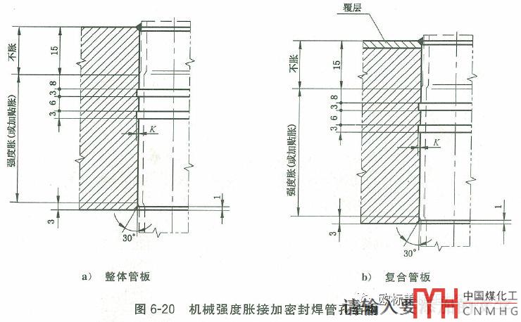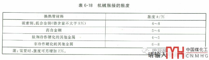 由于單純的強(qiáng)度焊接和強(qiáng)度脹接都有各自的短板,所以就產(chǎn)生了脹焊并用。脹接加焊接就客服了強(qiáng)度脹和強(qiáng)度焊的缺點(diǎn),改善了可靠性,適用范圍較廣。對(duì)鋼制管束一般采用強(qiáng)度焊加貼脹的組合連接;對(duì)于有色金屬尤其是非鎳基有色金屬換熱管和復(fù)合管板組合的場(chǎng)合,可以采用強(qiáng)度脹加密封焊的組合。但個(gè)人不推薦強(qiáng)度焊加強(qiáng)度脹的組合,由于位置關(guān)系接頭最先受力的是強(qiáng)度脹,只有強(qiáng)度脹幾乎遭到了破壞時(shí)才輪到強(qiáng)度焊的接頭承受換熱管的軸向載荷。如果要用強(qiáng)度焊加強(qiáng)度脹的所謂強(qiáng)強(qiáng)組合那么計(jì)算的時(shí)候就要強(qiáng)度脹和強(qiáng)度焊都要通過。注意貼脹的脹度一般是2%~4%,GB/T 151標(biāo)準(zhǔn)推薦是2%~3%。機(jī)械脹接的脹度在GB/T 151的表6-18.(吐槽一下這個(gè)表應(yīng)該放在制造部分更合適,放在設(shè)計(jì)部分難道想要設(shè)計(jì)在圖紙上表達(dá)脹度!)標(biāo)準(zhǔn)規(guī)定脹焊并用的適用范圍:1)振動(dòng)或循環(huán)載荷時(shí);2)存在縫隙腐蝕傾向時(shí);3)采用復(fù)合管板時(shí)。