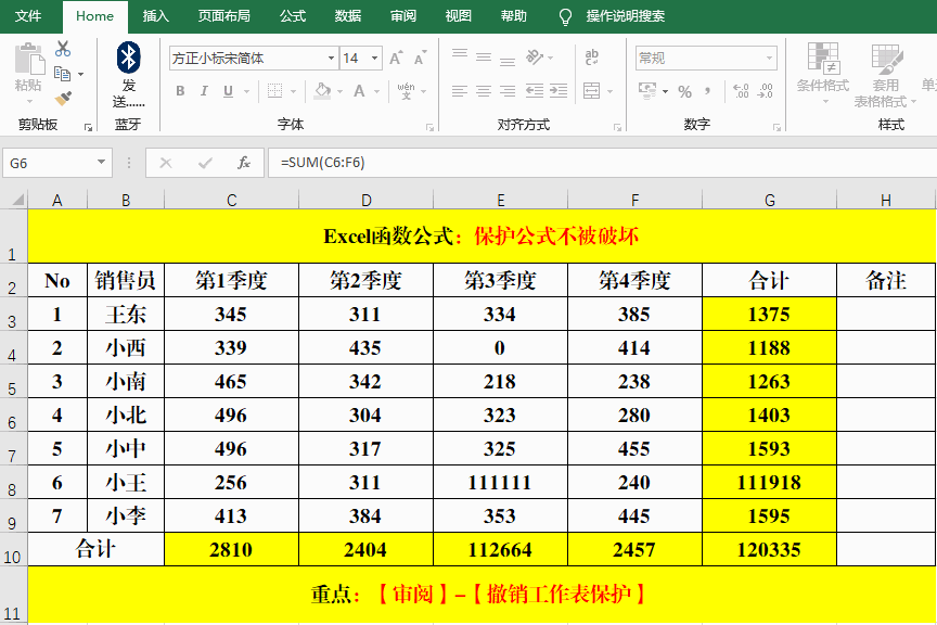 如果公式設置錯誤或者需要變更,這時候就需要取消工作表保護功能。