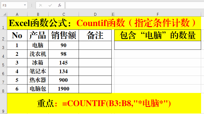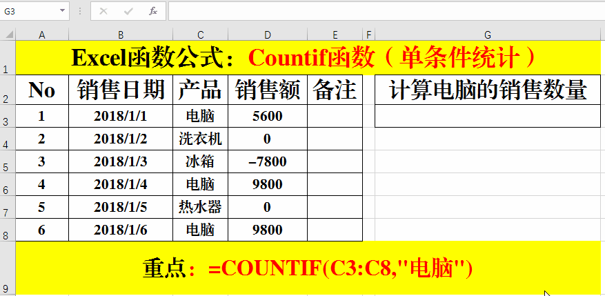 目的:統(tǒng)計(jì)“電腦”的銷售數(shù)量。