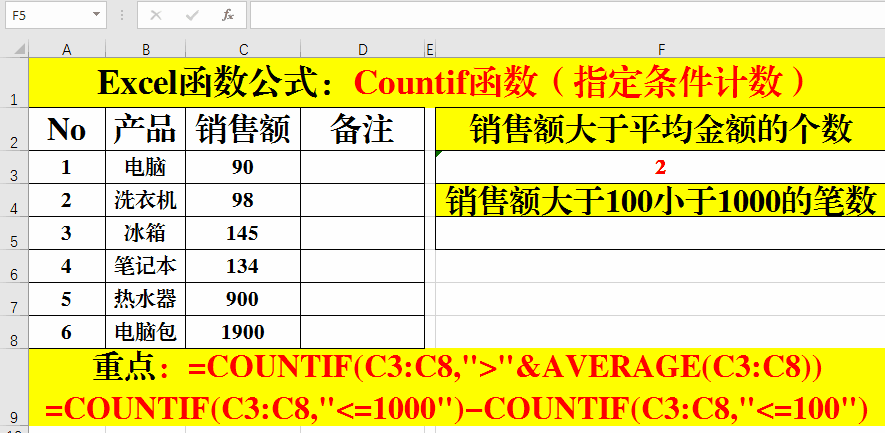 上述公式中是兩個(gè)條件,我們按照邏輯的方法,先計(jì)算出小于等于1000的數(shù)量,然后再減去小于等于100的數(shù)量,得到的就是大于100小于1000的數(shù)量。