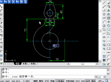 這張掛鉤圖紙比較復雜,不僅尺寸多,而且需要先將這些尺寸好好理一遍,研究研究這些圓弧繪制的先后順序,前提是必須對畫圓或畫弧的條件組合有充分的了解。可以先畫一下,不會或者要對答案再看下面的視頻。