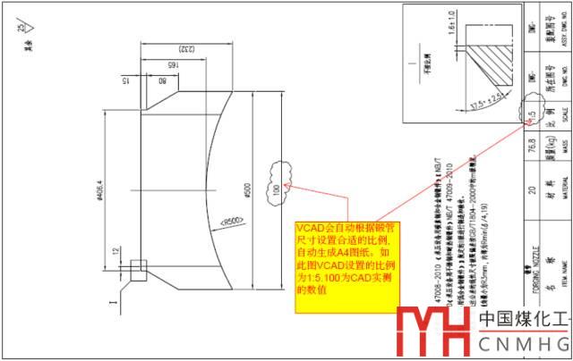 程序會(huì)精確的繪值法蘭和鍛管,并按比例出一張A4的鍛管圖。
