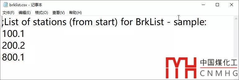 輸入F回車后會彈出一個選擇文件對話框,可以選擇一個預先設置好的CSV文件。在CSV文件可以直接輸入一系列距離值,還可以添加說明文字,說明文字前面加上分號;,這一行文字在處理的時候就會被忽略,下面是用記事本打開的一個樣例文件。