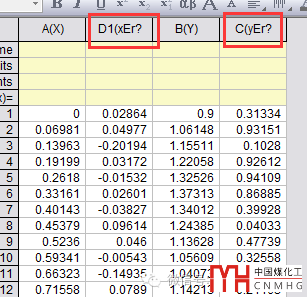 下圖所示數(shù)據(jù)中的xEr和yEr分別表示X和Y的誤差