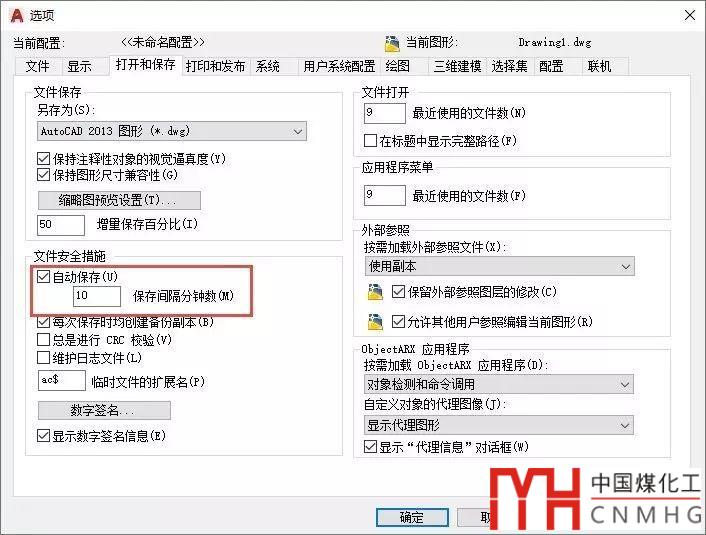 自動(dòng)保存文件的設(shè)置也在選項(xiàng)對(duì)話框,在”打開和保存“選項(xiàng)卡中可以設(shè)置自動(dòng)保存的時(shí)間間隔,如圖所示。