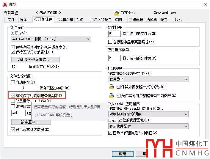 兩種設(shè)置的效果是一樣的,當(dāng)光標(biāo)停留在選項(xiàng)上時(shí),我們可以看到提示的變量,并且可以看到這個(gè)備份文件不僅可以防止圖形丟失,還可以實(shí)現(xiàn)增量保存,提高增量保存的速度。