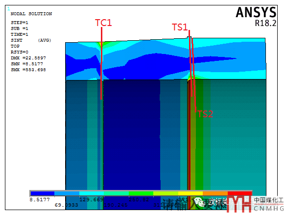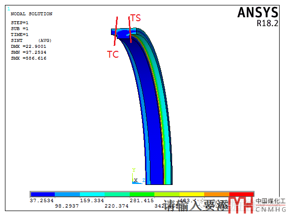 只是貼了管板和殼程筒體連接處的幾條路徑,注意局部薄膜應力還是要用設計載荷和設計工況下的許用應力的,只是PL+Pb+Q用工作載荷和工作溫度下的許用應力(有高低溫可用應力的平均值)。為了讓更多的人看的懂文中一直使用的是許用應力,沒有使用應力強度的概念。