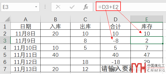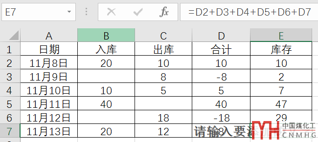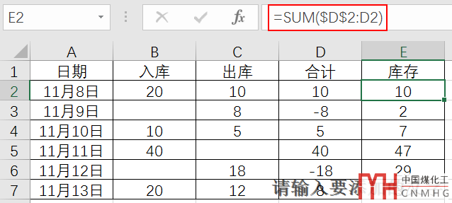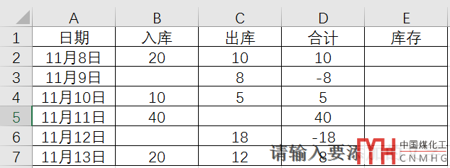 這是一個累計求和問題,合計=入庫-出庫,每天的庫存是合計的累加值