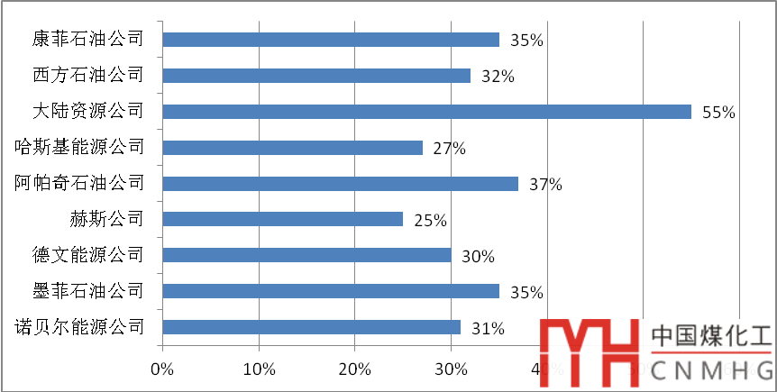 為了應對危機,相比國際石油巨頭20%~30%的支出削減幅度,多數(shù)北美石油公司資本削減力度更大(見圖9)。