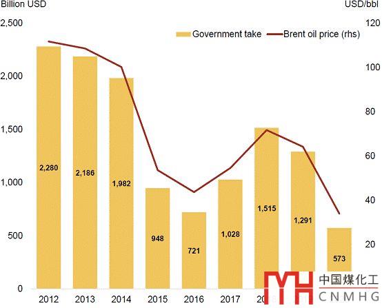 注:該預測假設2020年布倫特原油價格為34美元/桶,圖中政府收入包括國家石油公司收入