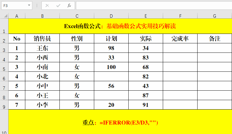 在目標(biāo)單元格中輸入公式:=IFERROR(E3/D3,"")。