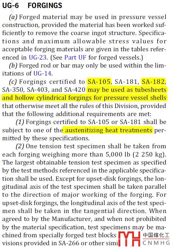 UG-6, C(1)條,如果用于小鍛件,SA-105正火后,可以用于管板和設(shè)備法蘭。