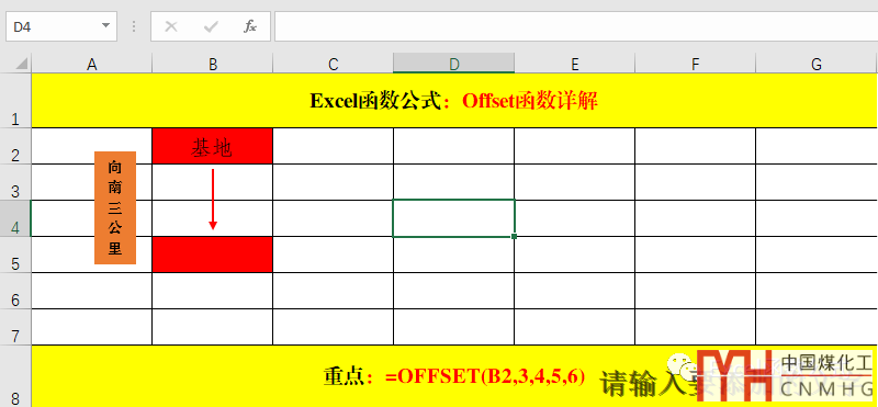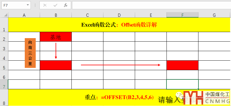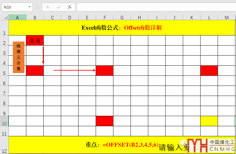 1、從基地(B2)出發(fā),向南搜尋3公里。暨:=Offset(b2,3……