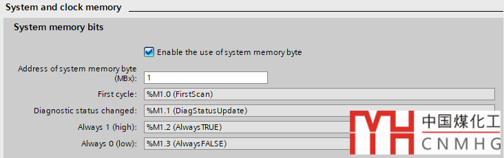 通過勾選“使用系統(tǒng)存儲區(qū)字節(jié)(Enable the use of system memory byte)”就可以啟用系統(tǒng)字節(jié)位。系統(tǒng)默認(rèn)使用位存儲區(qū)(M)的第一個字節(jié)(Byte1)作為系統(tǒng)字節(jié)。