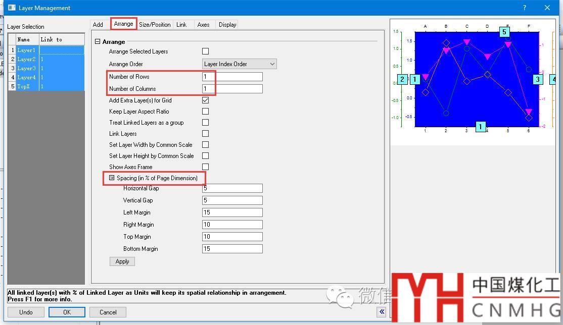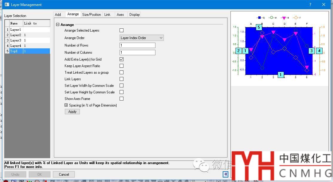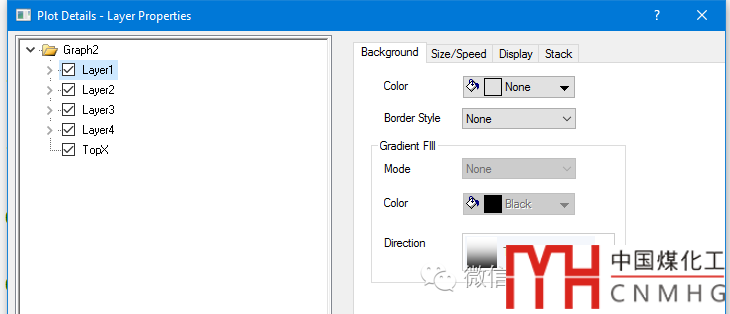 雙擊圖形內(nèi)部(非坐標軸內(nèi))的空白處或者右擊左上角圖層標識,打開圖層格式(Layer Properties)對話框,主要調(diào)整的項目有圖層背景顏色、大小、位置、顯示的項目以及圖形堆疊,其他的根據(jù)需要調(diào)整。