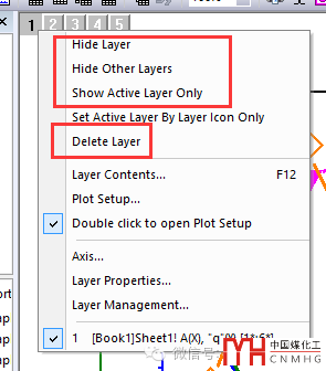 在Origin(lab)中,圖層標識顯示為左上角的帶數(shù)字的小方塊。活動圖層的方塊中數(shù)字為黑色,非活動圖層的數(shù)字為白色。