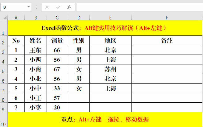 目的:快速移動選定的數(shù)據(jù)。