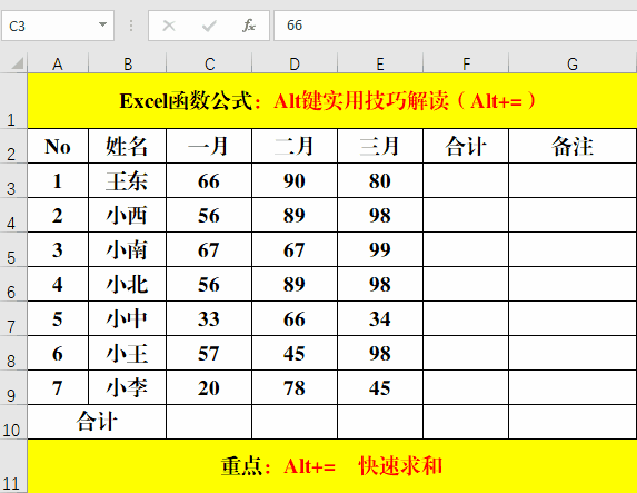 四、Alt+=:快速求和。
