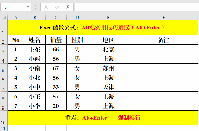 目的:在單元格內(nèi)強制換行。