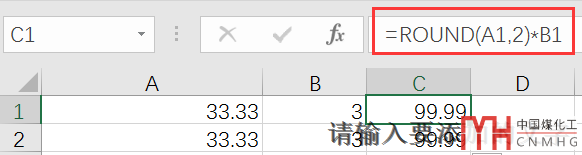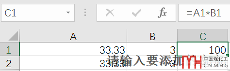 C列是使用A*B進(jìn)行計(jì)算,一個(gè)等于100,一個(gè)等于99.99