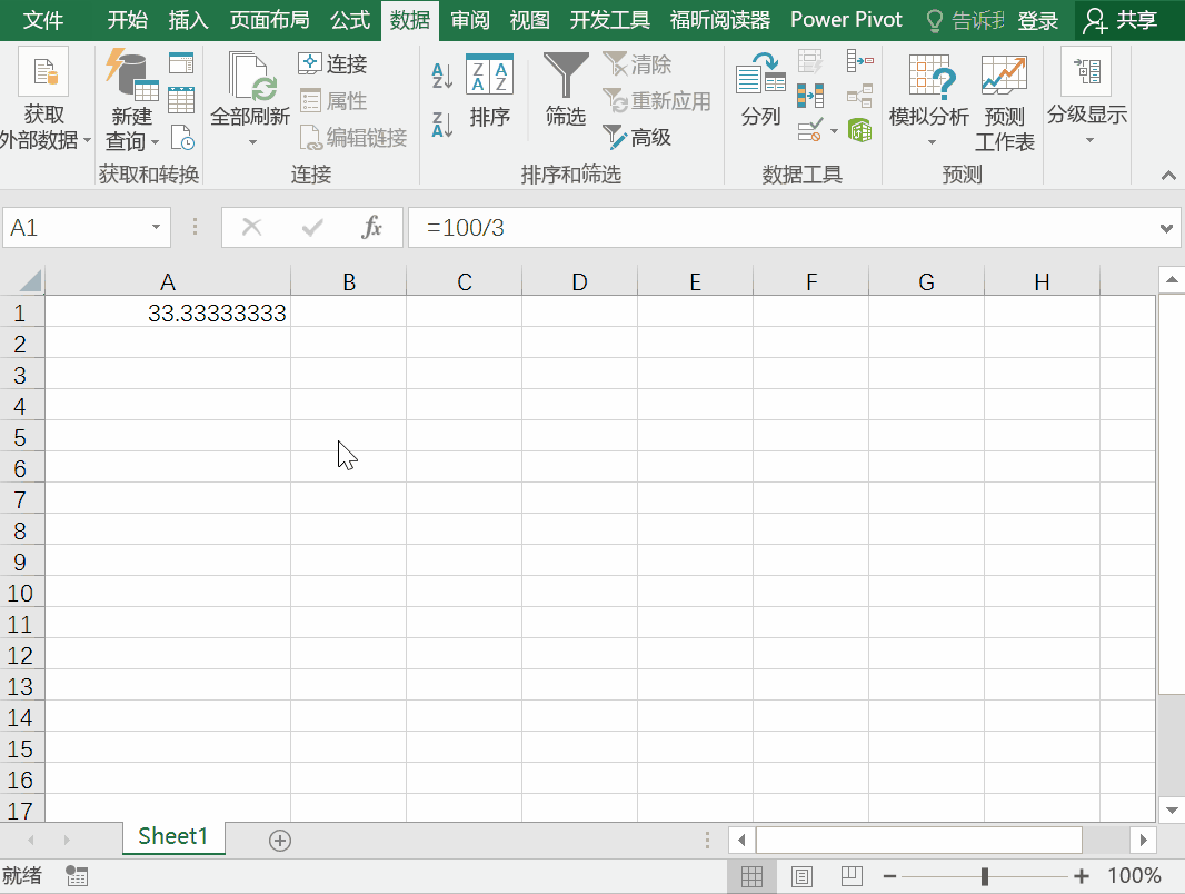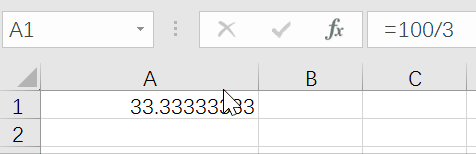 A1中的33.33來源是100/3然后設(shè)置單元格格式的顯示值,實(shí)際值為33.33....