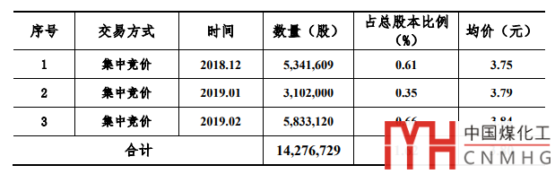 2019年5月,百川能源發(fā)布公告,截止2019 年 4 月 30 日,公司已通過集中競價交易方式回購股份 7,437,860 股,占公司總股本的比例為 0.52%,購買的最高價為 14.88 元/股、最低價為 8.61 元/股,已支付的總金額為 81,411,960 元(不含印花稅、傭金等交易費用)。上述回購進展符合既定的回購股份方案。