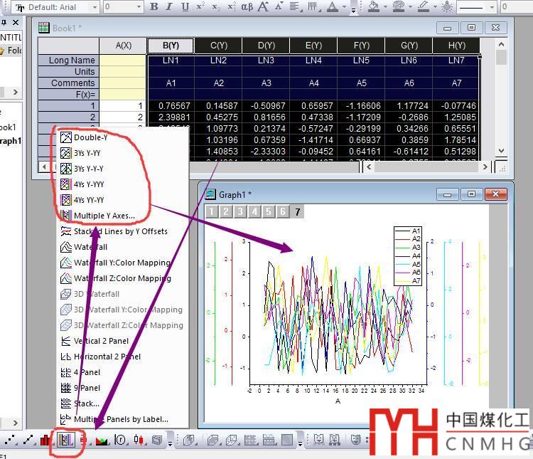 OriginLab中多Y軸圖形的繪制