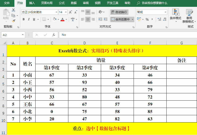 三、特殊表頭排序。