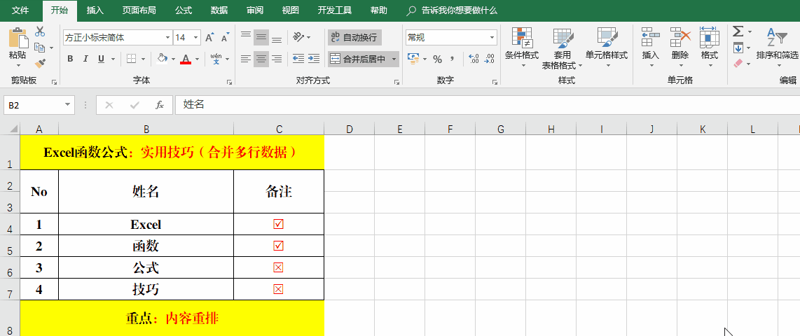 七、快速合并多行數(shù)據(jù)。