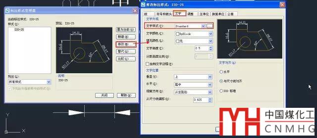 輸入D,打開標(biāo)注樣式對(duì)話框,選擇標(biāo)注使用的標(biāo)注演示,單擊修改按鈕,打開標(biāo)注樣式修改對(duì)話框,檢查文字樣式設(shè)置,如下圖所示。