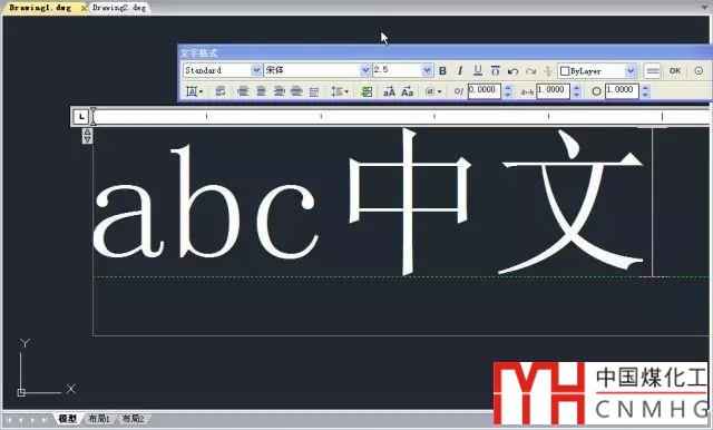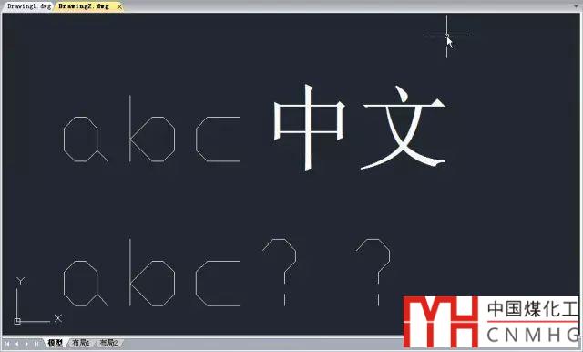 可以看到由于使用了CAD字體,但沒有設(shè)置大字體,多行文字中中文自動(dòng)被替換成宋體,而單行文字中則只能顯示為問號(hào)了。而且由于在多行文字中字體被替換,炸開后漢字跟字母分開了,這個(gè)后面我們可以不管,只關(guān)注字體的效果。