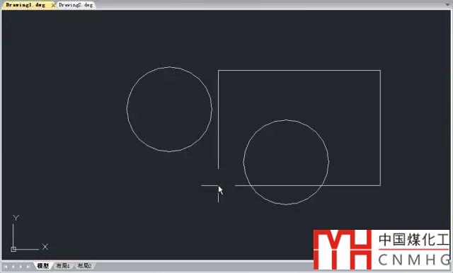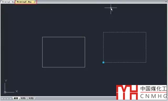 3、選擇矩形圖塊,按CTRL+C,切換到前一張圖紙(AUTOCAD 2014以上版本或浩辰CAD或可以直接單擊文件標(biāo)簽欄的文件名,低版本可以按CTRL+TAB或從窗口菜單中選擇),按CTRL+V, 明明復(fù)制的是矩形,但我們可以看到粘貼過來的卻是圓,如下圖所示。