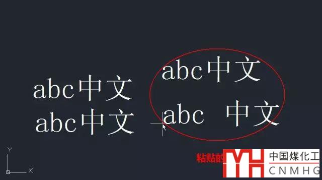 5、從新圖中選中兩個(gè)文字,按CTRL+C復(fù)制,切換到之前的圖紙中,按CTRL+V粘貼,我們會(huì)發(fā)現(xiàn)粘貼后的文字變成了跟當(dāng)前圖相同的效果,如下圖所示。