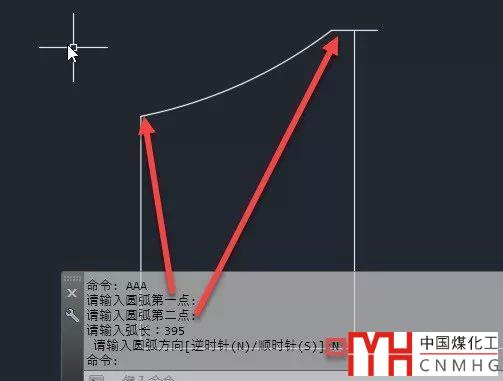 3、輸入弧長(zhǎng),回車(chē),命令行會(huì)提示順時(shí)針S和逆時(shí)針N,就繪制出了所需的圓弧。