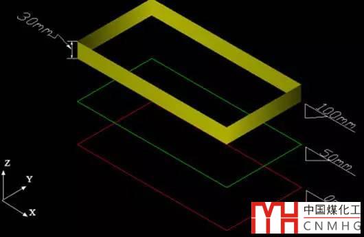 下圖中有三個(gè)矩形,其中紅色和綠色的厚度為0,黃色矩形的厚度為30,三個(gè)矩形的標(biāo)高分別是0、50和100。
