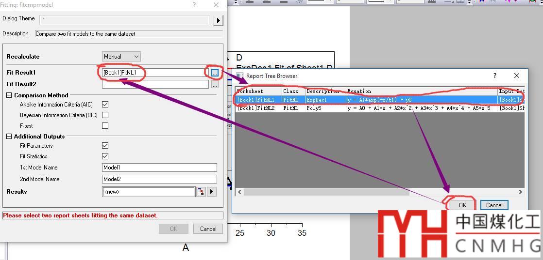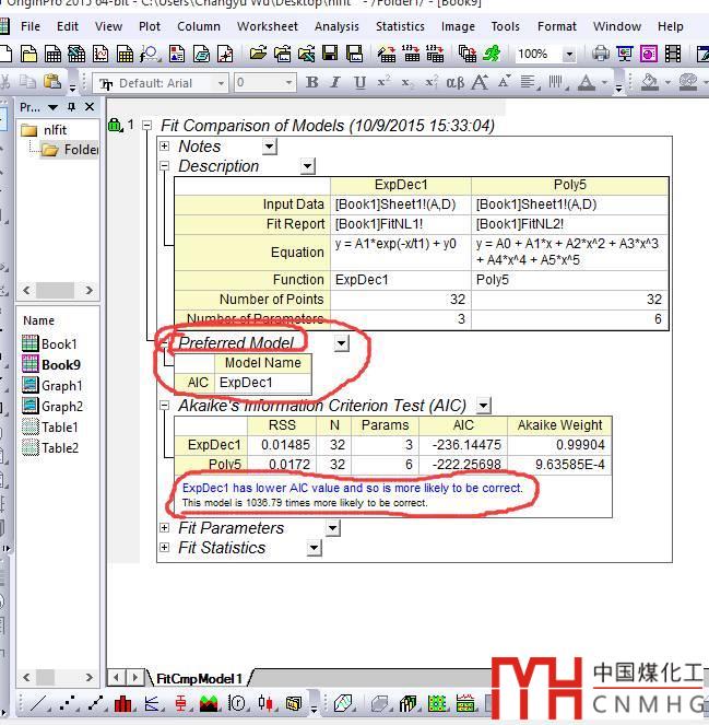 對于非線性擬合,可能存在多種模型滿足擬合需求,但哪種模型最優(yōu), originlab會給出答案。