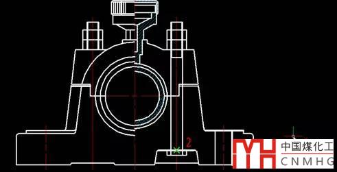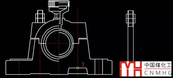 4、捕捉中點(diǎn)2作為移動(dòng)的目標(biāo)點(diǎn)。指定后,您會(huì)發(fā)現(xiàn),螺栓會(huì)被移動(dòng),而且點(diǎn)1與點(diǎn)2重合。至此,我們已經(jīng)完成螺栓在軸承架上的裝配,如下圖所示。