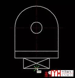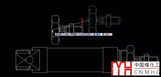 3、在圖中捕捉一點(diǎn)作為圖形移動(dòng)的基點(diǎn)。如下面的樣圖中我們選中了右側(cè)的螺栓后,將捕捉中點(diǎn)1為移動(dòng)的基點(diǎn)。