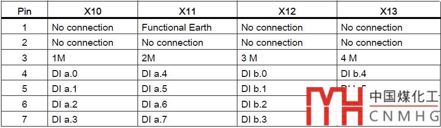 SM1221 16 DI模塊與8DI類似,不過它有4個(gè)接線端子,上面兩個(gè)是"X10"和"X11",下面兩個(gè)是"X12"和"X13",針腳定義如下圖: