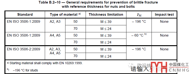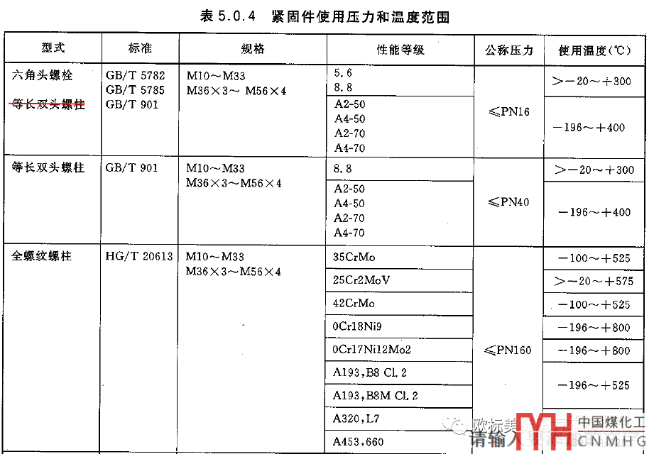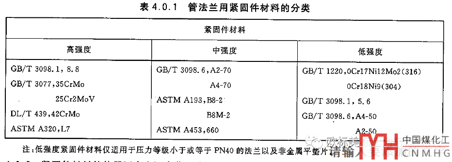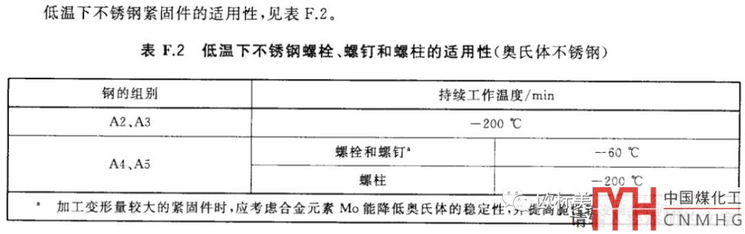 HG/T 20592上部分關(guān)于A2,A4緊固件的使用規(guī)定