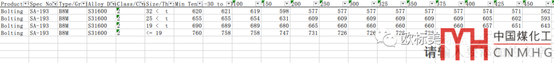 SA-193 B8M CL.2高溫抗拉和屈服數(shù)據(jù)