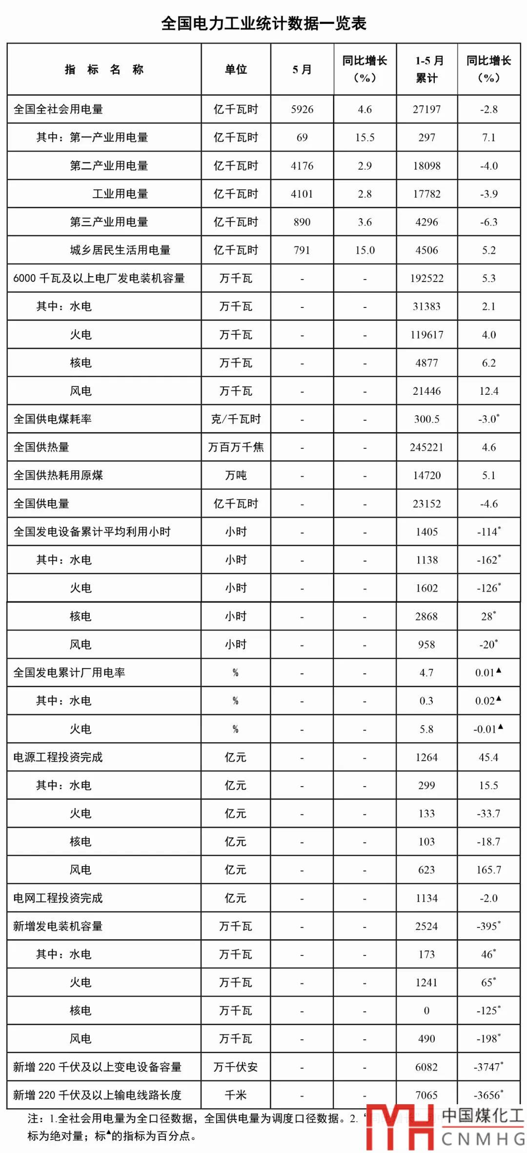 國家能源局發(fā)布1-5月份全國電力工業(yè)統(tǒng)計數(shù)據(jù)