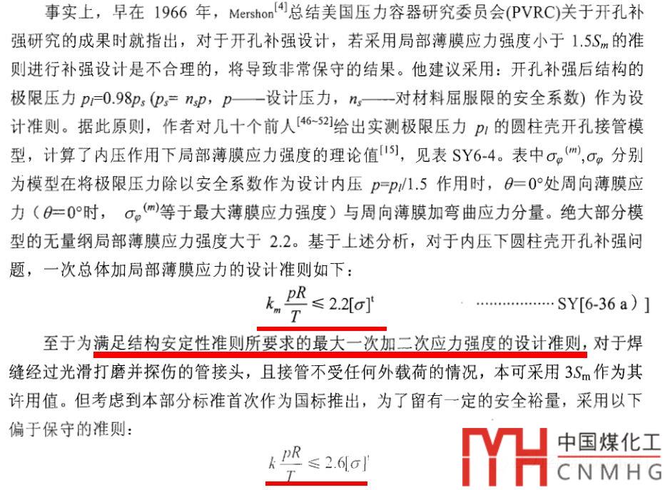一般的設(shè)計準(zhǔn)則 SII£ 1.5 Sm應(yīng)用于圓柱殼開孔補(bǔ)強(qiáng)設(shè)計是非常保守的: