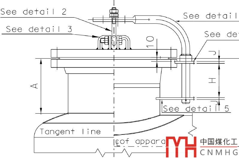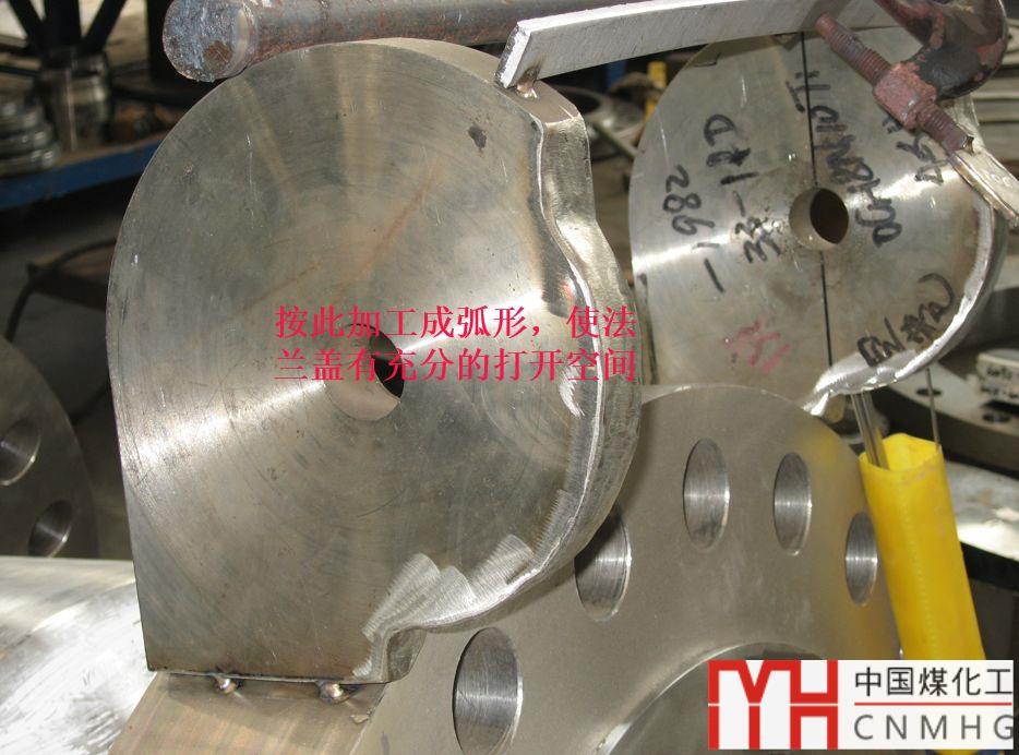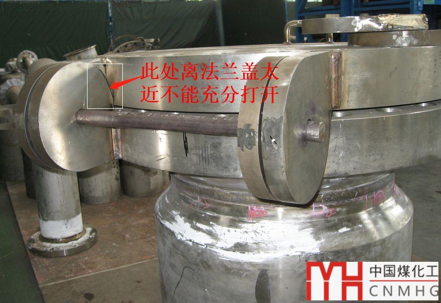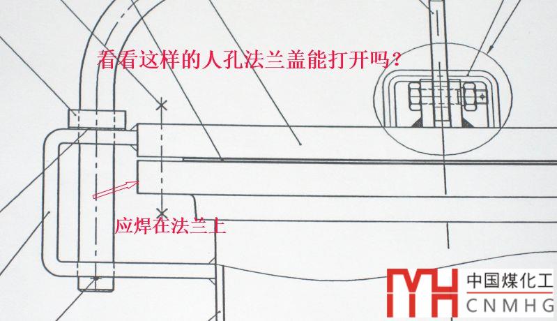 人孔原本參照業(yè)主的規(guī)范設(shè)計的(如下圖),但是設(shè)計把支撐板焊在了法蘭蓋上,導(dǎo)致裝上后,法蘭蓋打不開了。