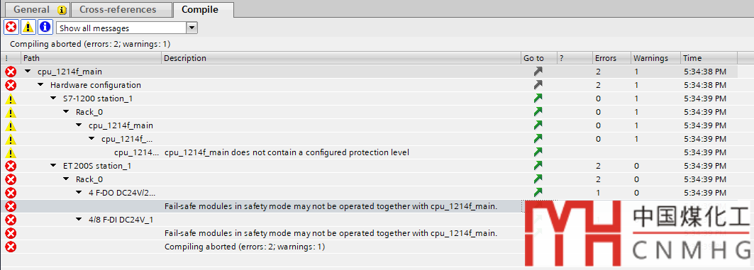 問(wèn)題一:關(guān)于“Fail-safe modules in safety mode may not be operated together with cpu1214f_main”編譯錯(cuò)誤