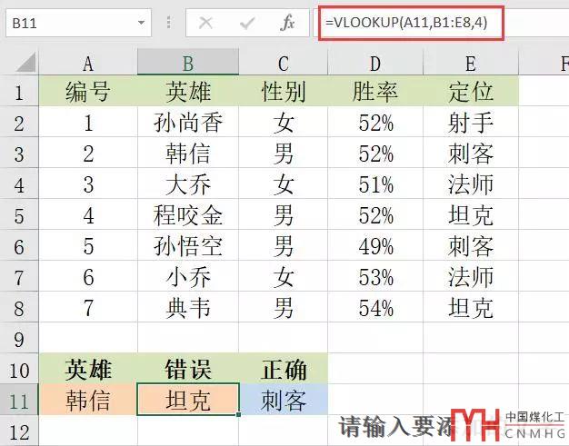 =VLOOKUP(A11,B1:E8,4),這里面只有3個參數(shù),如果省略第4個參數(shù),則默認第4個參數(shù)為1,為模糊查找,所以出錯