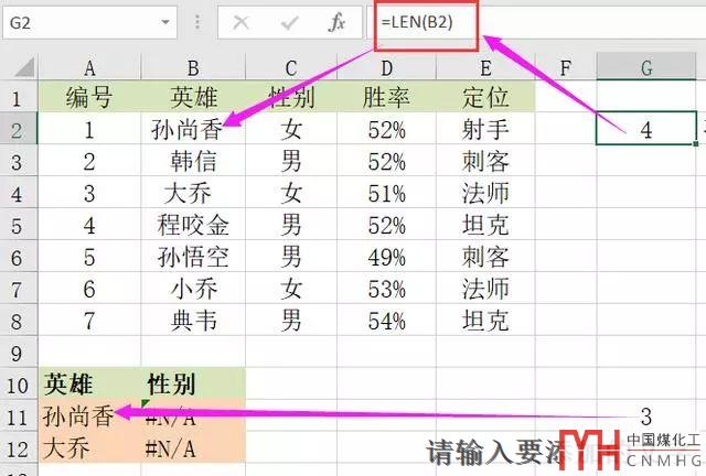 我們可以使用LEN()函數(shù)來進行檢察,數(shù)據(jù)源區(qū)域內(nèi)的字符個數(shù)是4個,而查找區(qū)域內(nèi)的值是3個